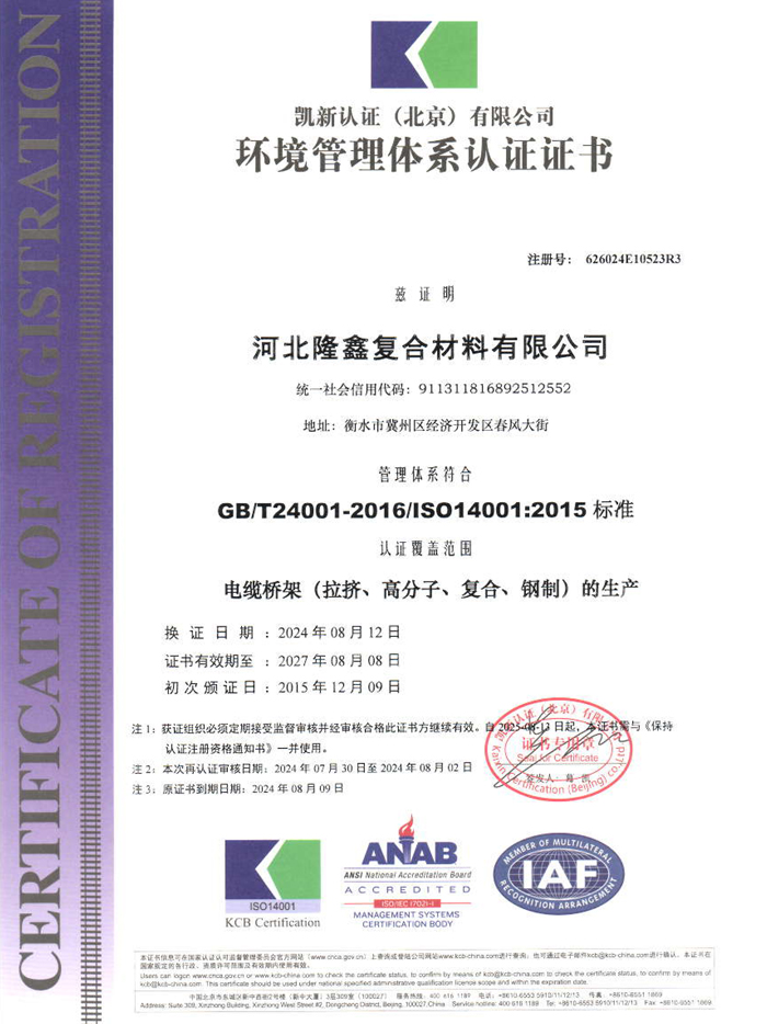 環境管理體系認證證書